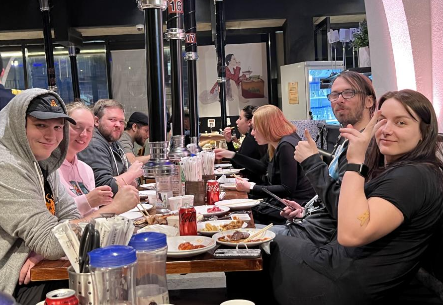 (L->R): Chris, Anneke, Rebekah, James, Steve, Tanja, Gaetano, me