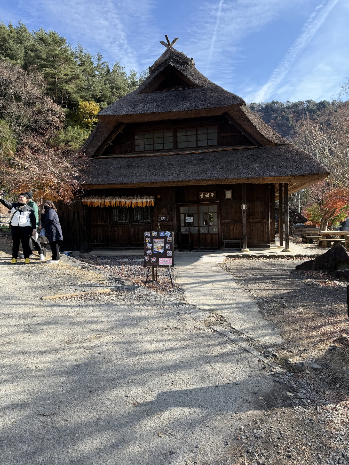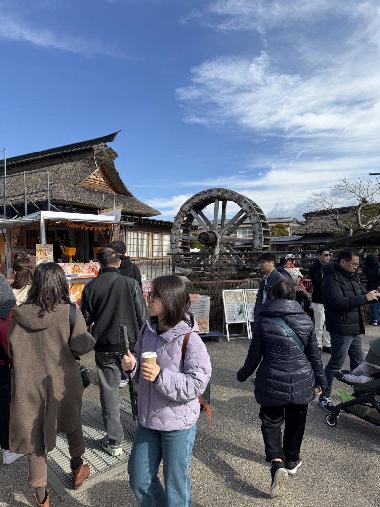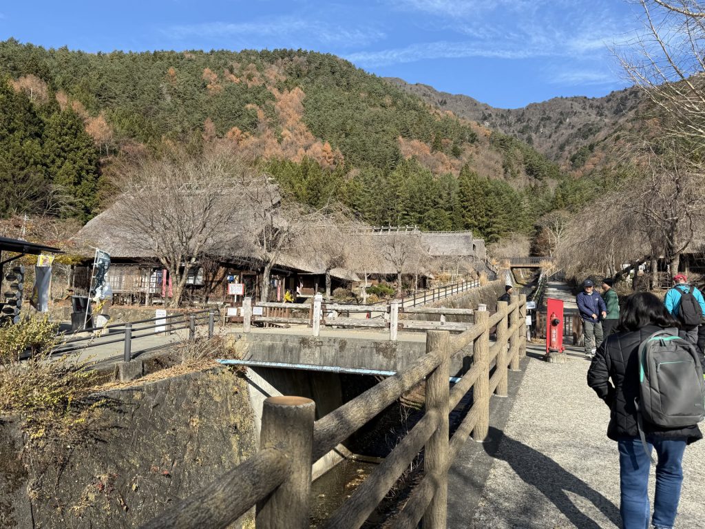 Our first stop – there was a nice crisp gentle breeze – interestingly there were stands and stalls with Fuji apples, Taiyaki, and other goods for sale. There was even a Halal uh… Kebab shop available! π We were definitely in a tourist trap. It wasn’t horrible, but I at least, personally felt a bit silly with the village. I twas nice to look at the layout of the village – but our tour guide let slip that it was a rebuilt village after being destroyed by a large landslide in the 90s; so now no one was allowed to live there, only work there as a tourist spot.
