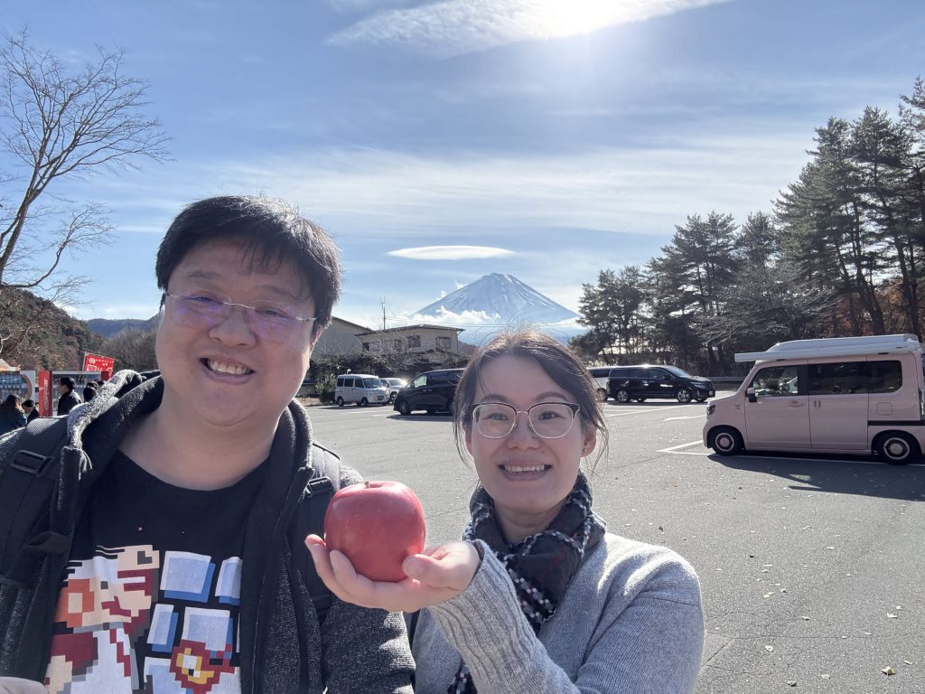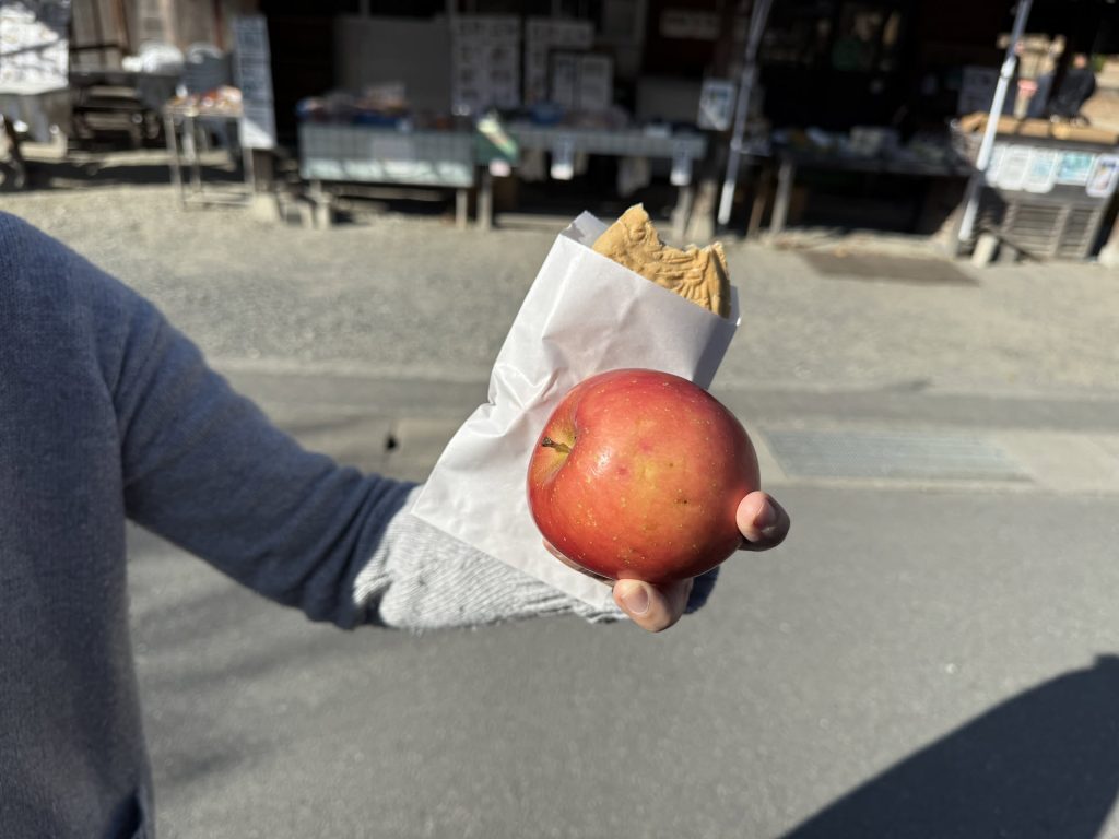 We took a look around, and ended up buying a couple snacks – a Taiyaki, and a Fuji apple (because of course, Fuji apples at Mt. Fuji!)